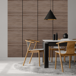 Akupanel można wykorzystać do tworzenia pięknych listew ściennych i sufitów, które nadają pomieszczeniu nowoczesny wygląd. Panel tłumi dźwięk i usuwa pogłos w pomieszczeniu, co drastycznie poprawia akustykę w pomieszczeniu.
