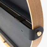 Lustro WoodUpp wykonane jest z wysokiej jakości szkła o średnicy Ø60 cm oraz wytrzymałej ramy ze sklejki fornirowanej naturalnym dębem lub czarnym fornirem. Całkowita szerokość, łącznie z bocznymi śrubami, wynosi 62,8 cm.