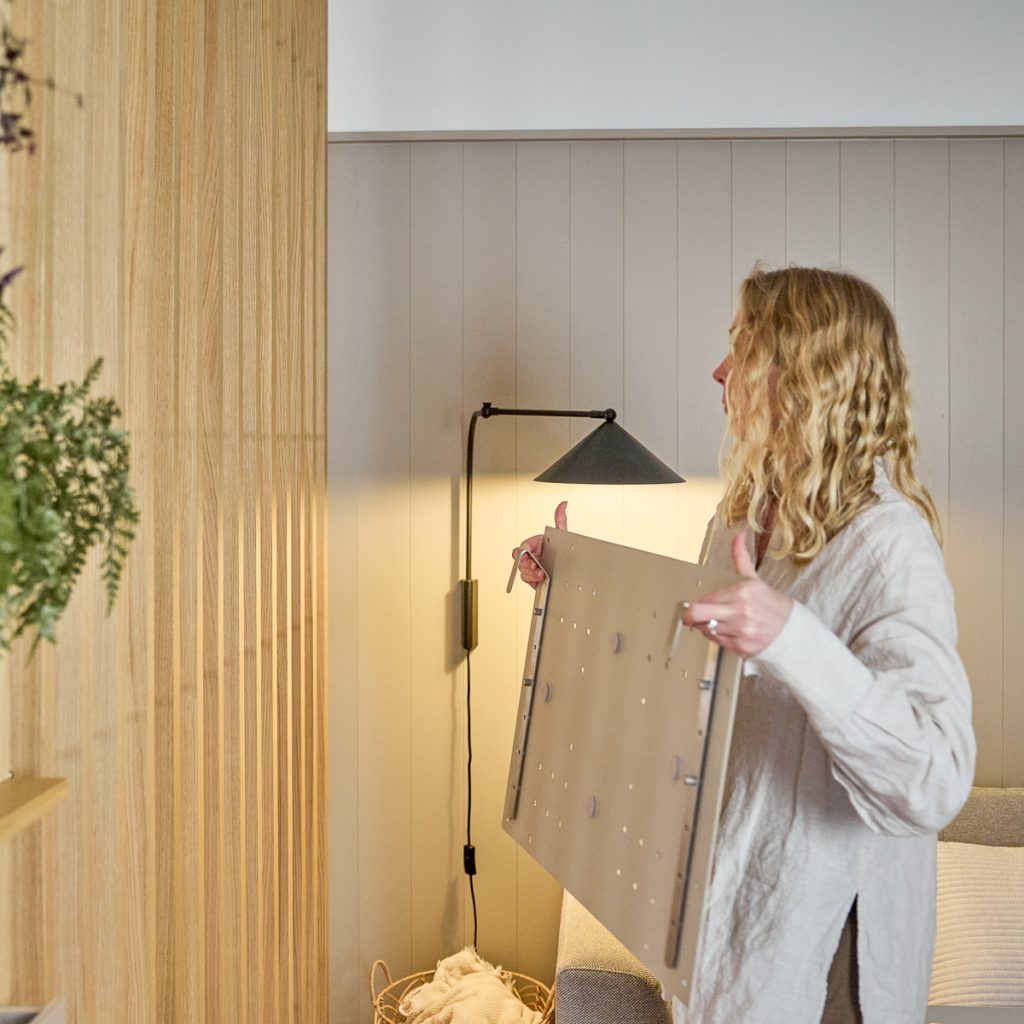 Nell TV Mount pozwala umieścić telewizor bezpośrednio w Embrace | BM1. Jest regulowany pod względem wysokości i wykonany z mocnej stali, dzięki czemu możesz ustawić ekran dokładnie tam, gdzie najlepiej pasuje w pomieszczeniu. Nie ma wiercenia w ścianie ani stałej konfiguracji. Telewizor staje się częścią systemu Embrace, więc możesz zmieniać wysokość lub układ, gdy Twoje potrzeby się zmieniają.
