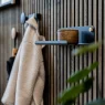 Półki wykonane są z 2 mm grubości stalowej blachy galwanizowanej i następnie pokryte proszkowo dla bardzo trwałego i eleganckiego wykończenia. Śruby z łbem motylkowym są toczone z litego, nieobrabianego mosiądzu i dlatego mogą z czasem rozwinąć lekką patynę. Uchwyty są odlewane z cynku, zapewniając mocną podstawę do montażu.