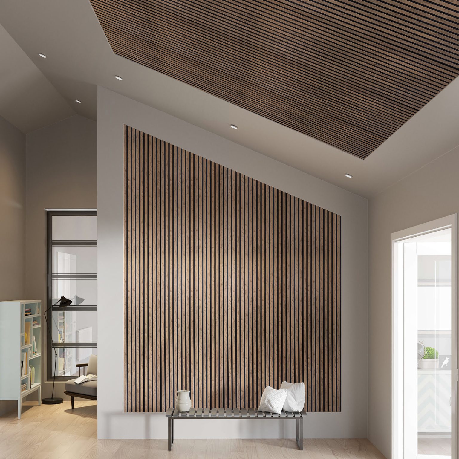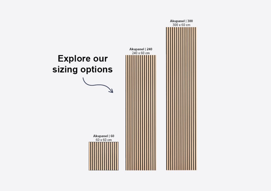 Akupanel | 300, specjalnie zaprojektowany do przestronnych i otwartych przestrzeni, w których każdy detal ma znaczenie, ma wymiary 300 x 60 cm i jest dostępny w 8 kolorach (okleina z naturalnego drewna)